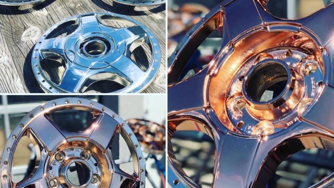 Chemische Spritzmetallisierung ist eine Verfahrenstechnik zur Verspiegelung von Oberflächen, die neben dem Galvanisieren und dem Hochvakuumbedampfen zunehmend an Bedeutung gewinnt. Die Verspiegelung ist korrosionsbeständig nach DIN EN 9227, UV-beständig und witterungsbeständig. Es kann auf Gegenständen jeder Größe und Form eine metallische Optik erzeugt werden. Nahezu alle Materialien, zum Beispiel Kunststoff, Metall, Holz und Glas können lackiert werden. Dabei lässt sich nicht nur die Optik verchromter Oberflächen nachstellen, sondern auch alle Buntmetalle, z.B. Gold, Bronze, Kupfer und bunte Farben in Glanz- und Matteffekten. Egal ob für die Kunststoffindustrie, den Prototypenbau, Messebau und Reklame, die Tuningbranche, die Glasindustrie oder die Oldtimer-Restaurierung – unser Verfahren kann für jeden erdenklichen Bereich genutzt werden. Das Anwendung ist sehr wirtschaftlich und umweltschonend, im Gegensatz zu Verfahren welche dasselbe optische Ergebnis liefern.